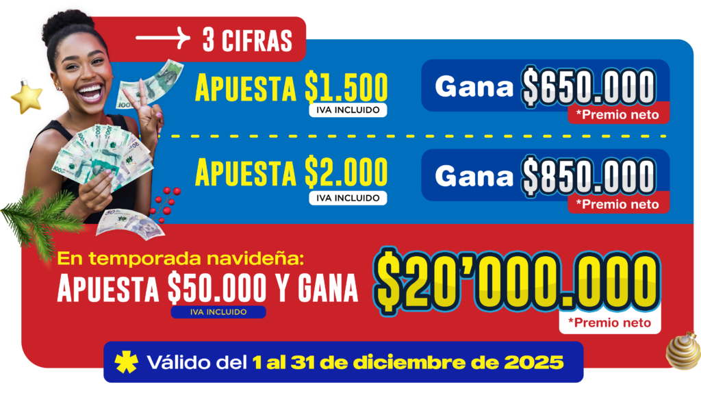 * En San Andrés y providencia el precio de la apuesta es de $3.362 (Exento de IVA)