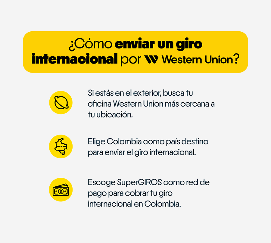 Giros Internacionales En SuperGiros, conectamos Familias Más allá de las fronteras. Realiza Giros a varios lugares del mundo a través de nuestra alianza con Western Union Más informaciónEncuentra tu punto SuperGiros más Cercano en ColombiaPuntos Supergiros Bolívar