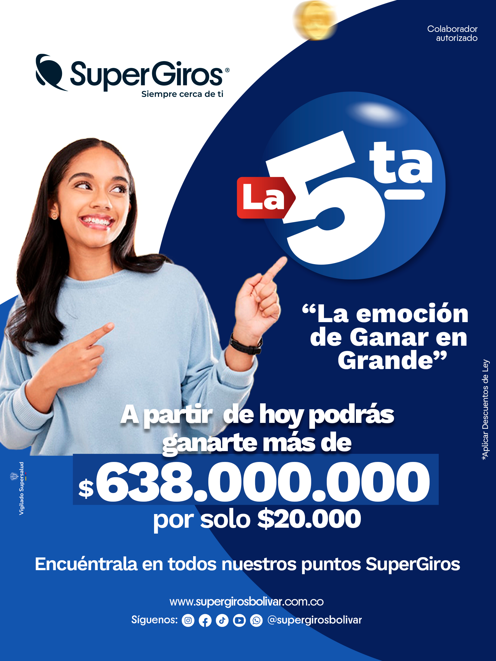 En una apuesta que busca luchar contra los juegos de suerte y azar ilegales en Colombia, SuperGiros lanzará este 28 de abril “La Quinta”, el juego debuta con los sorteos de las loterías Caribeña y Fantástica.